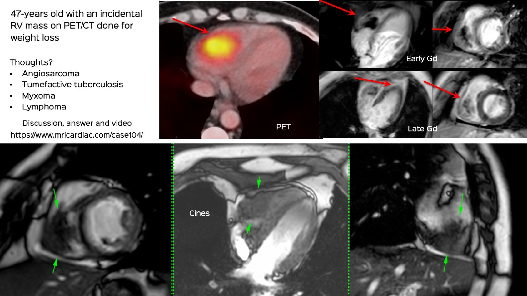 This 47-years old man was found to have a mass on a PET/CT done for weight loss, in the right ventricle.